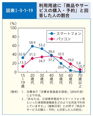「利用用途に「商品やサービスの購入・予約」と回答した人の割合│平成29年版消費者白書目次(消費者庁)」