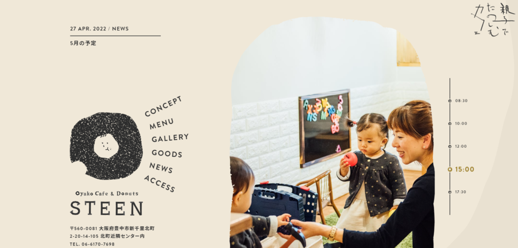 「親子で楽しむカフェ」と銘打ち、誰のためのお店なのかがはっきりわかります。