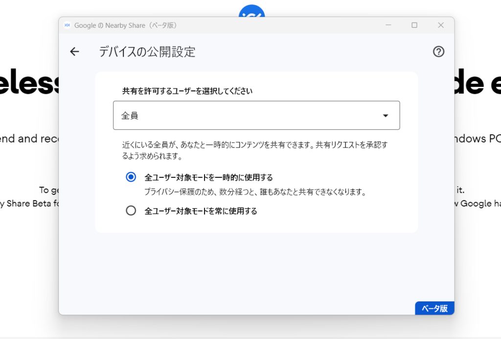2023年春、GoogleはWindows版「Nearby Share(ニアバイシェア)」のベータ版アプリを公開しました。