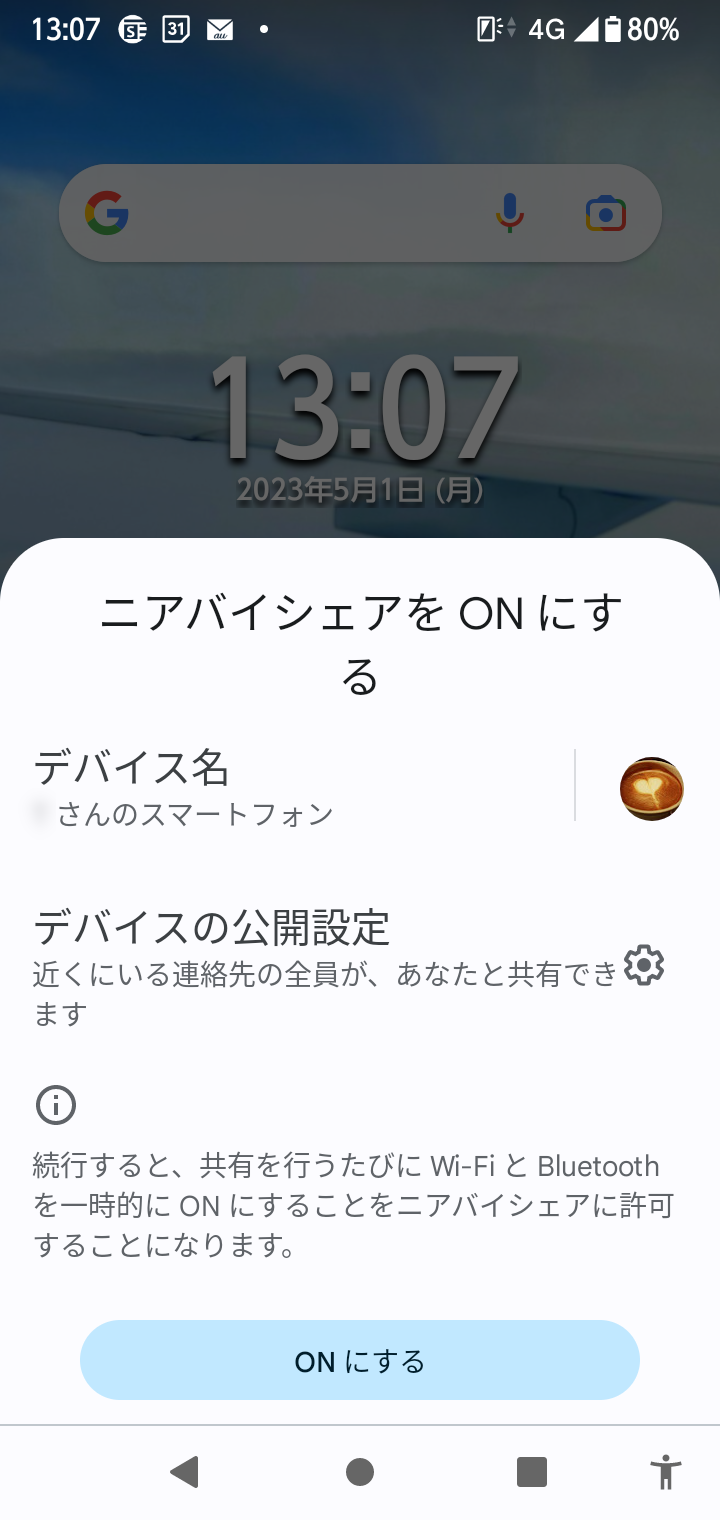 次は、「ニアバイシェアをONにする」という画面が現れます。