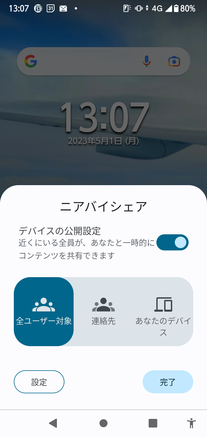Nearby Shareは、近接する端末同士でファイルやデータをやりとりするときに役立つものです。