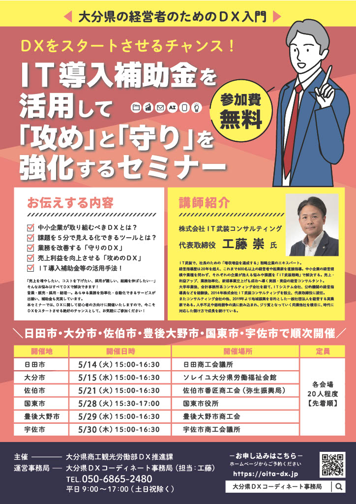 「大分県の経営者のためのDX入門」セミナー開催場所と日時