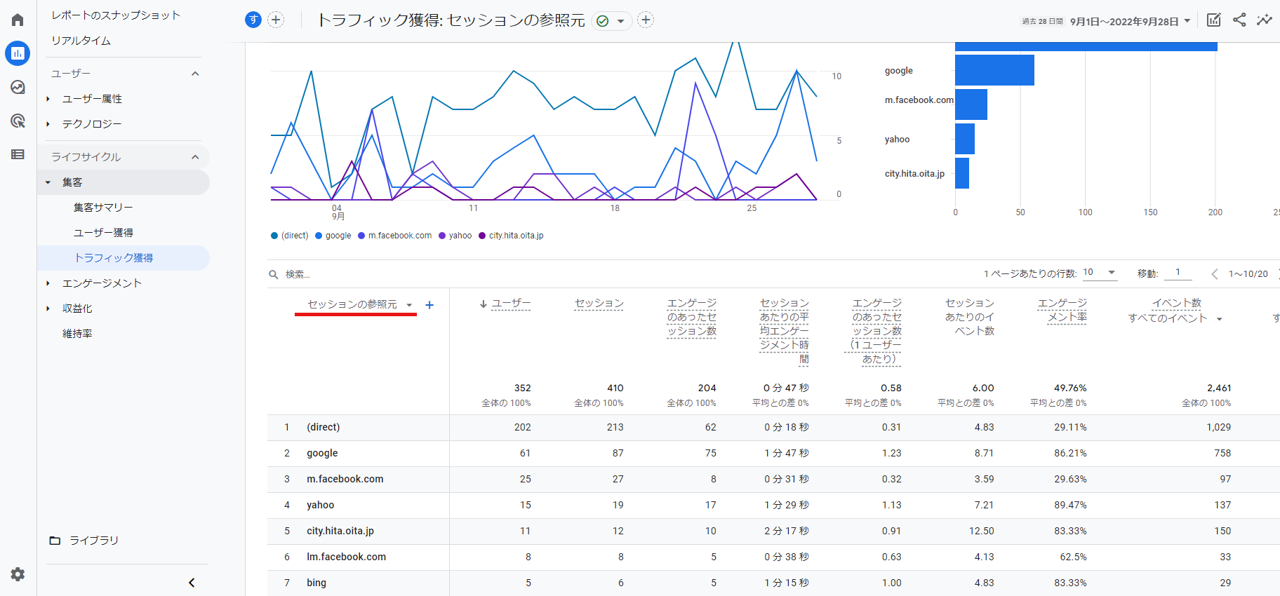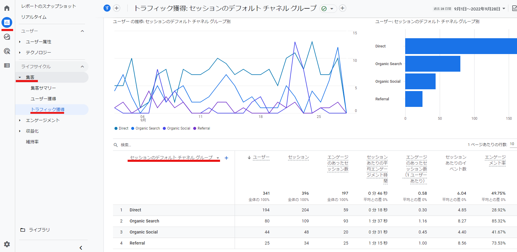 実際、流入に関する情報の見方は、現在のGoogleアナリティクスも、GA4でも変わりませんでした。