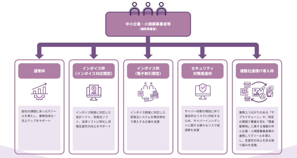 業務効率化や売上向上を目指し、自社の課題にマッチするITツールを導入する企業への補助金。