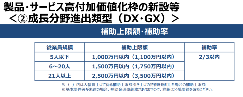 ・従業員数21人以上:通常枠1,333万円・賃上げ枠2,250万円