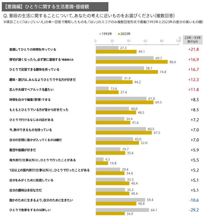 「「ひとり意識・行動調査1993/2023」30年変化の結果を発表│博報堂生活研究所」
