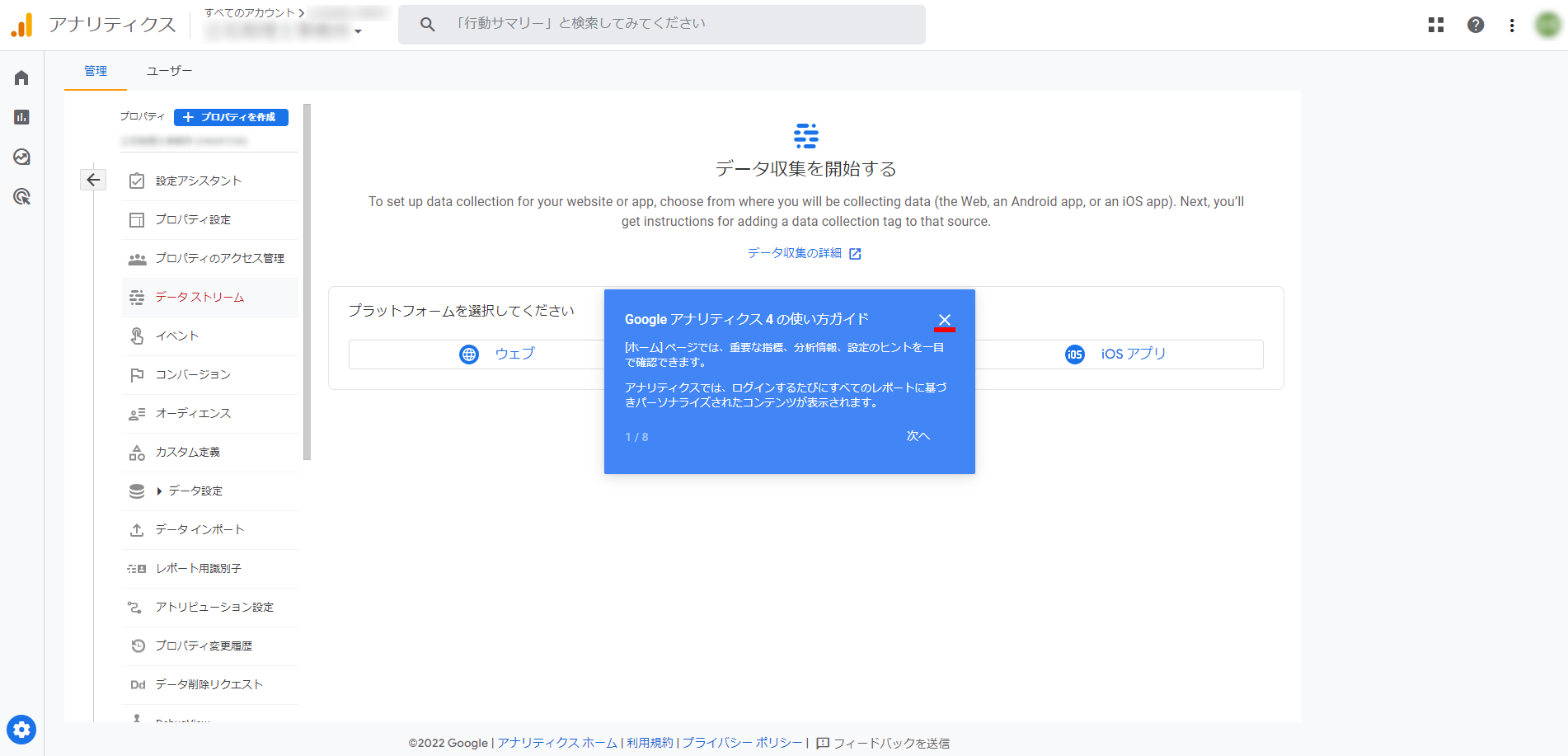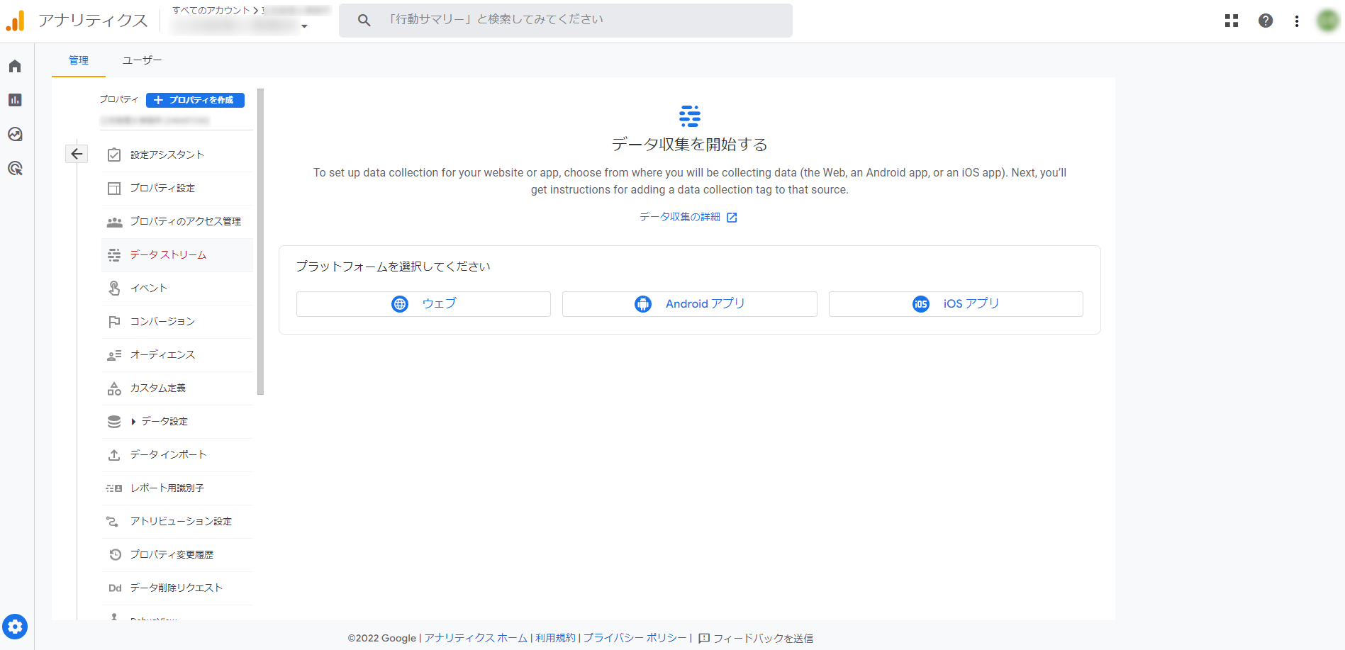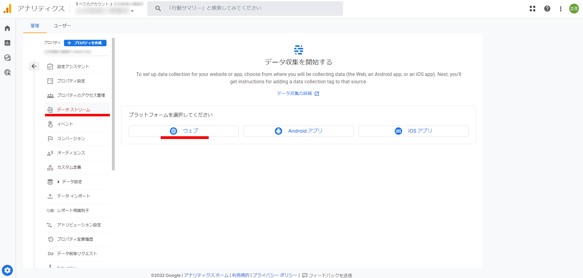 「データストリーム」をクリック後、「ウェブ」を選択します。
