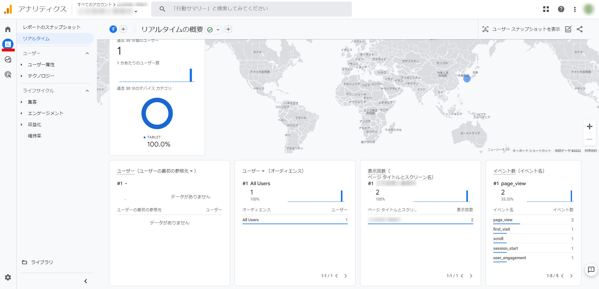 ですが、一旦タグを埋め込みデータ計測が始まれば、すぐに「今何人がアクセスしているか」「どの地域からのアクセスなのか」といったことがリアルタイムでわかります。