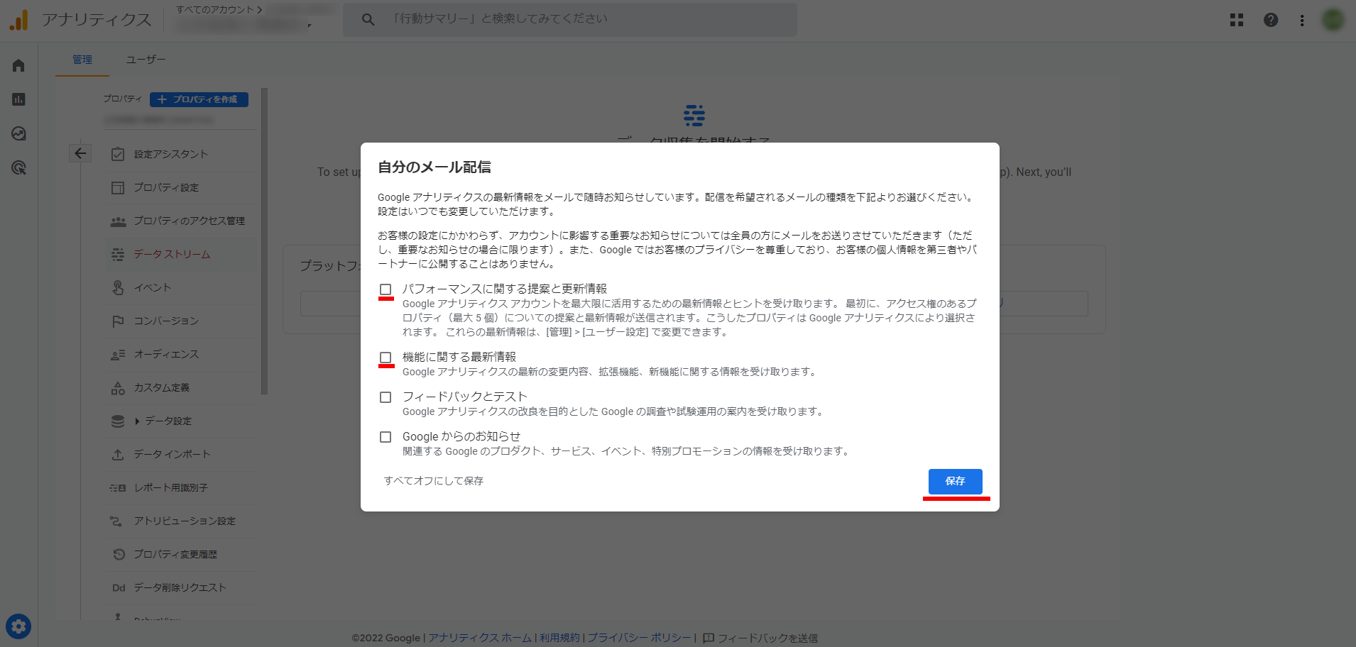 次の画面では、どんな情報が必要かを問われますので、よくわからなければ上のふたつにチェックを入れて「保存」をクリックしましょう。