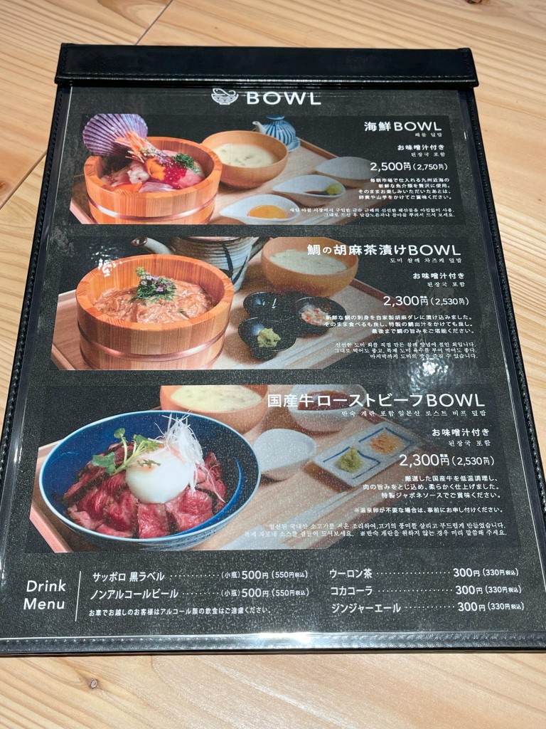 BOWL様のメニュー看板とメニュー表を制作しました。
