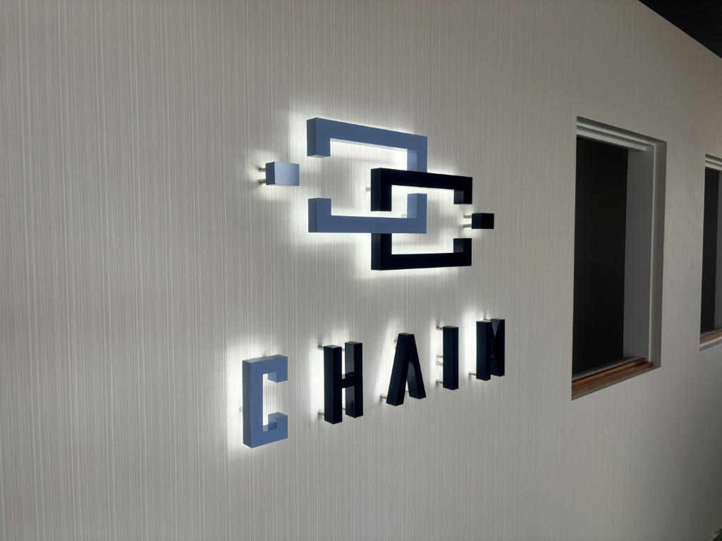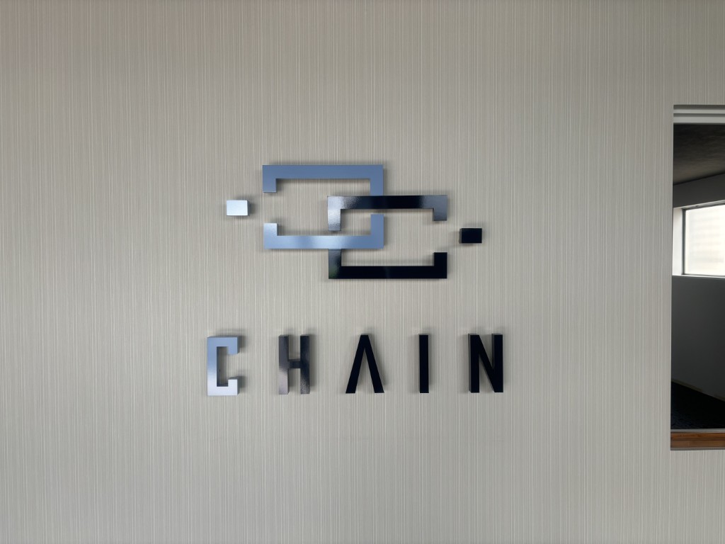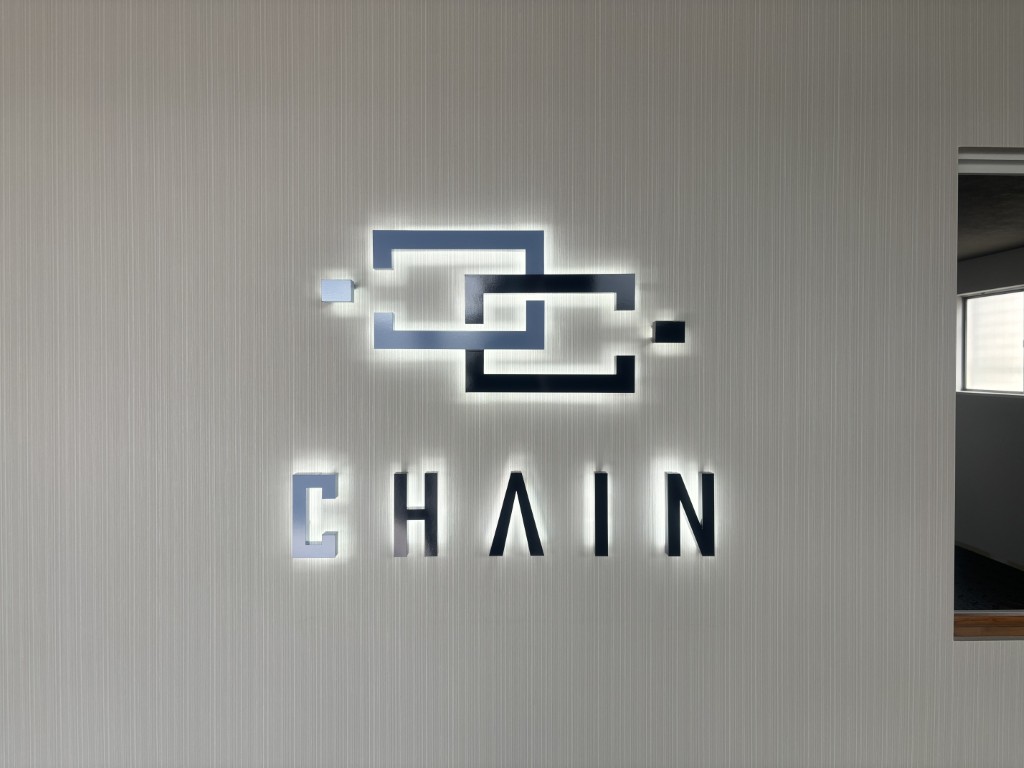 株式会社CHAIN様のオフィス内のサインを制作しました。バックライトLED仕様です。