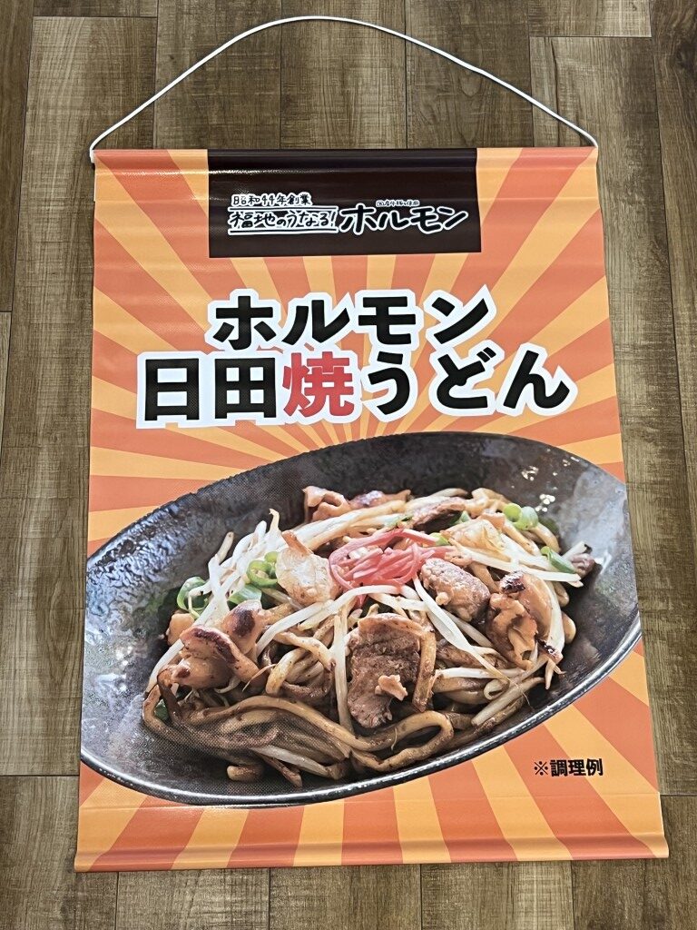 福地のうなるホルモン様の販促用タペストリーを制作しました。