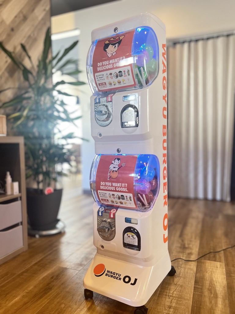 WAGYU BURGER OJ様向けでガチャガチャマシンのデザインと施工、制作を行いました。