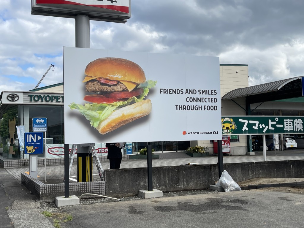 WAGYU BURGER OJ様 若宮店の野立看板を制作、設置しました。