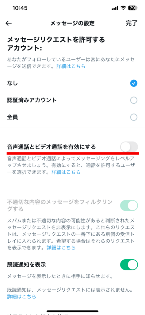 Xでの通話機能を使われたくないときは、以下の流れで通話機能を無効にしてください。